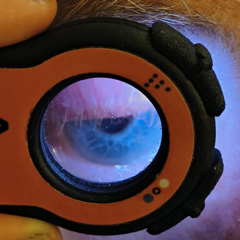 “I had the opportunity to judge this excellent device in a couple of scleral contact lens assessment this weekend, I found it excellent, especially for the initial viewing on lens placement, presence of air bubbles and initial clearances etc. Both easily done with the aid of its magnification and being able to easily switch between its built in blue fluorescein (with filter) and white light sources.”